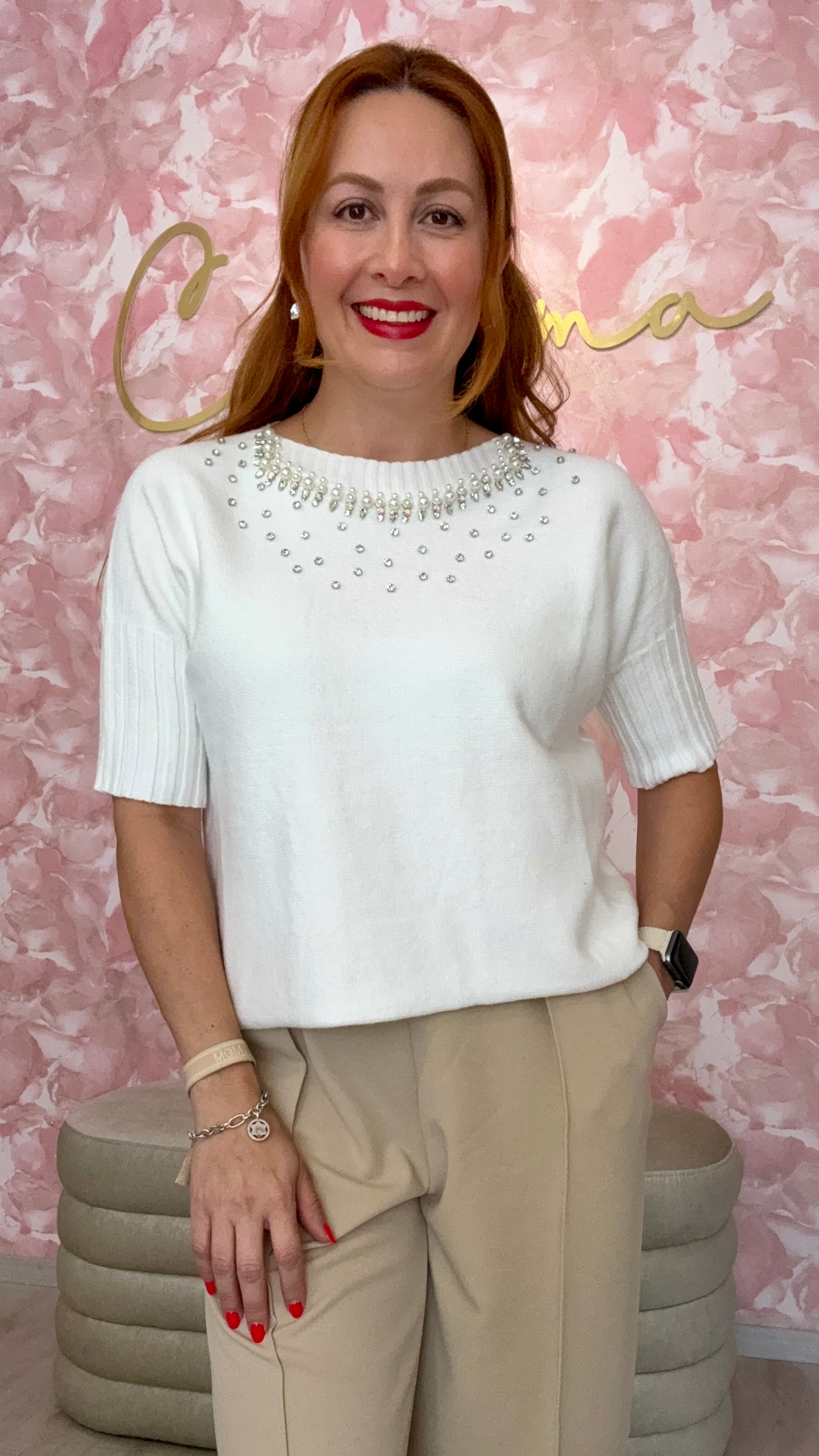 Blusa con perlas y brillos